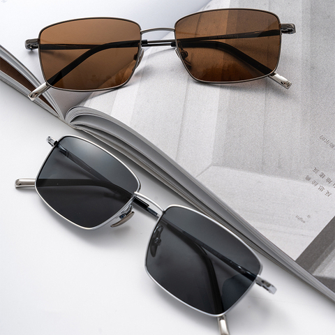 남성용 빈티지 브랜드 선글라스 티타늄 스퀘어 프레임 직사각형 렌즈 편광 골드 실버 프레임 경량 택 안경
